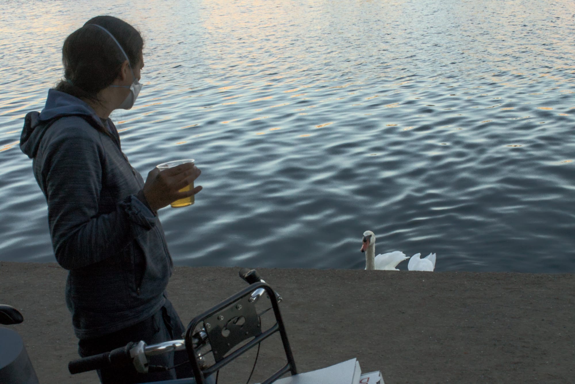 And then we sat by the lake eating our pizza. We were visited by some friends.