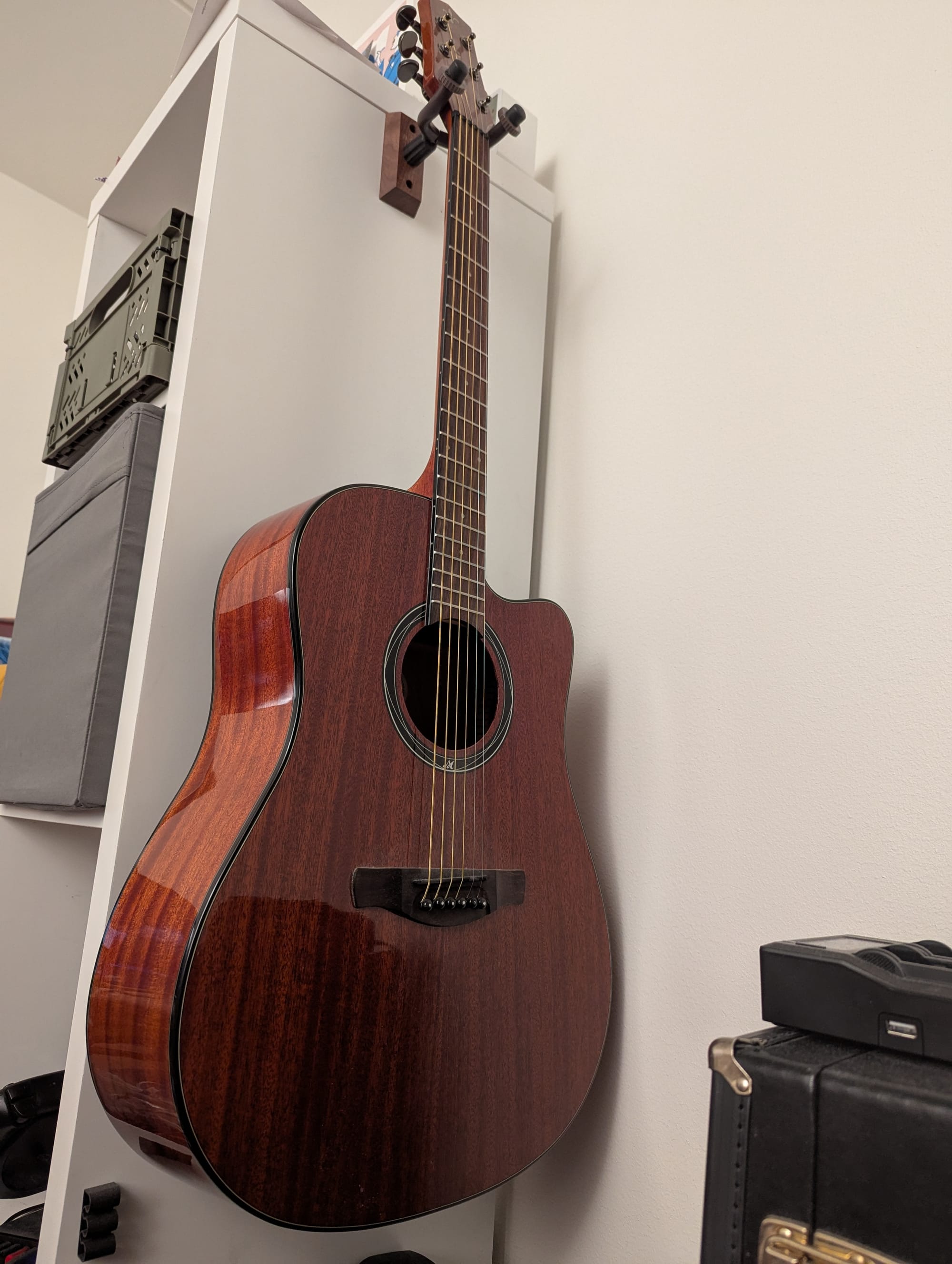 I've been seriously wanting to really learn guitar or piano, and yesterday I took the first step towards that goal. I've had this $100 guitar for a half year or so and picked it up halfheartedly every couple of weeks to get a little bit strumming time. But now (!) I am making a promise to practice guitar consistently and deliberately.