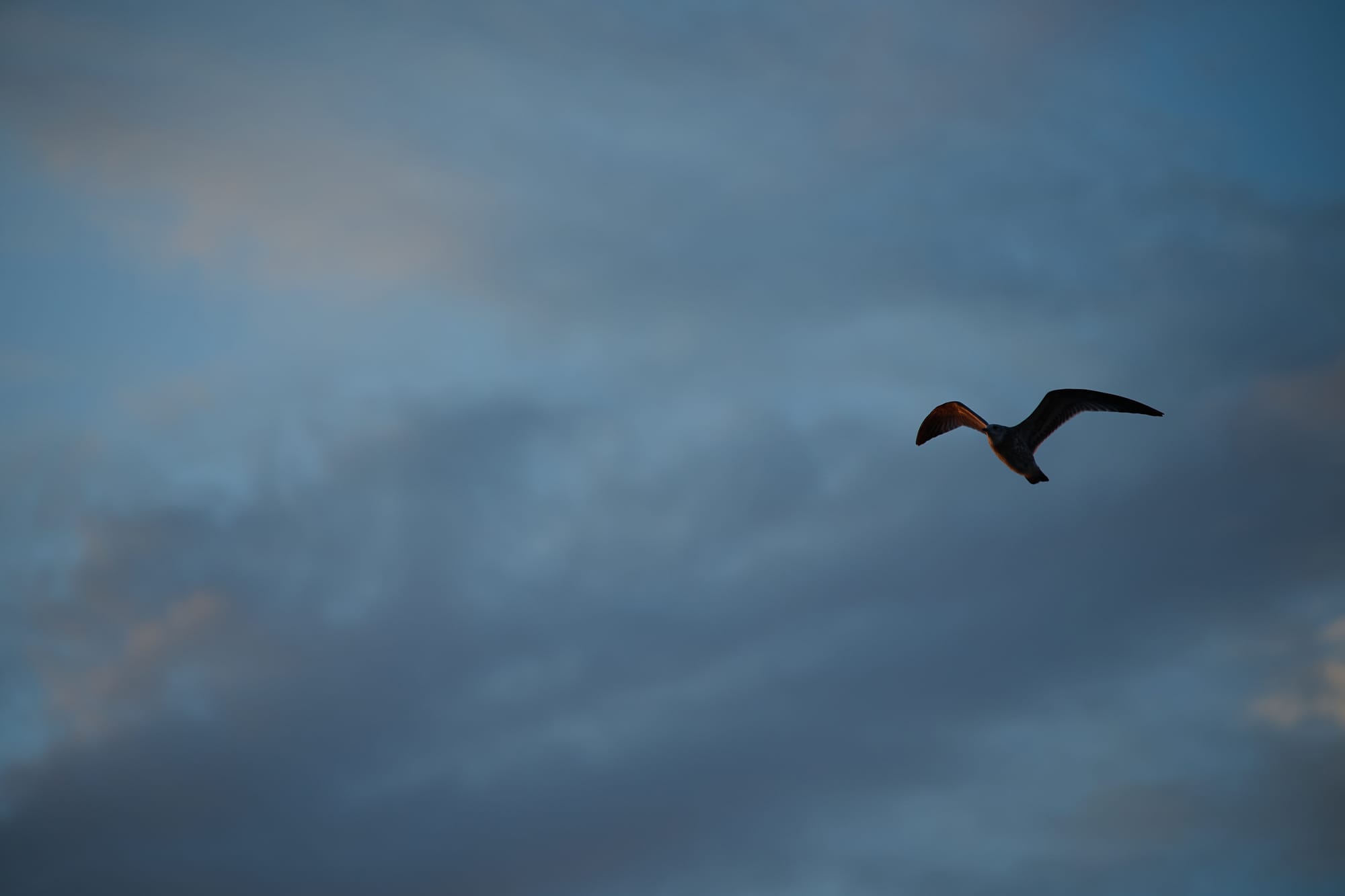 I had a hard time choosing my favorite image of this undeterminable yet determined bird. On Top has a great profile of the …seagull(?) on top of the tower, but Amidst has this wonderful bright light of the sun behind the clouds on the right.